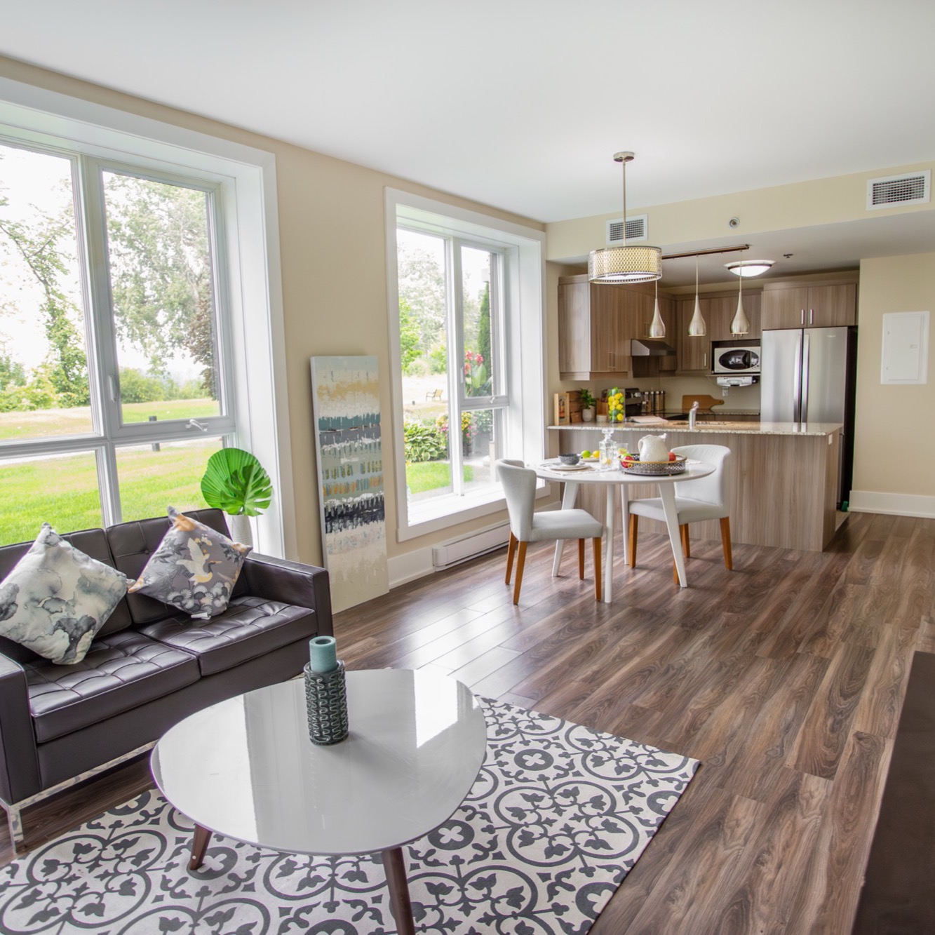 One and two-bedroom condo-style apartments feature abundant windows, granite countertops and central air conditioning and heating. Experience the ultimate in luxury living, surrounded by nature’s splendour, and immersed in a peaceful environment.