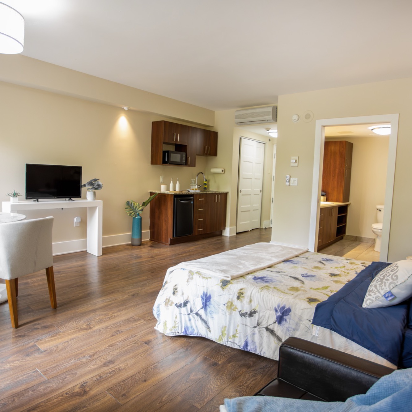 Explore our modern units! Whether you seek an apartment with high-quality finishes, or a studio with an all-inclusive package designed for a worry-free retirement lifestyle, we have a range of options to suit your preferences.
